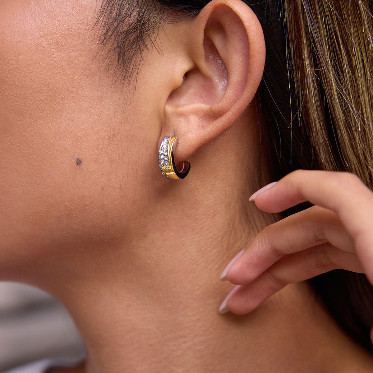 Two-tone cz c-hoop titanium steel earrings